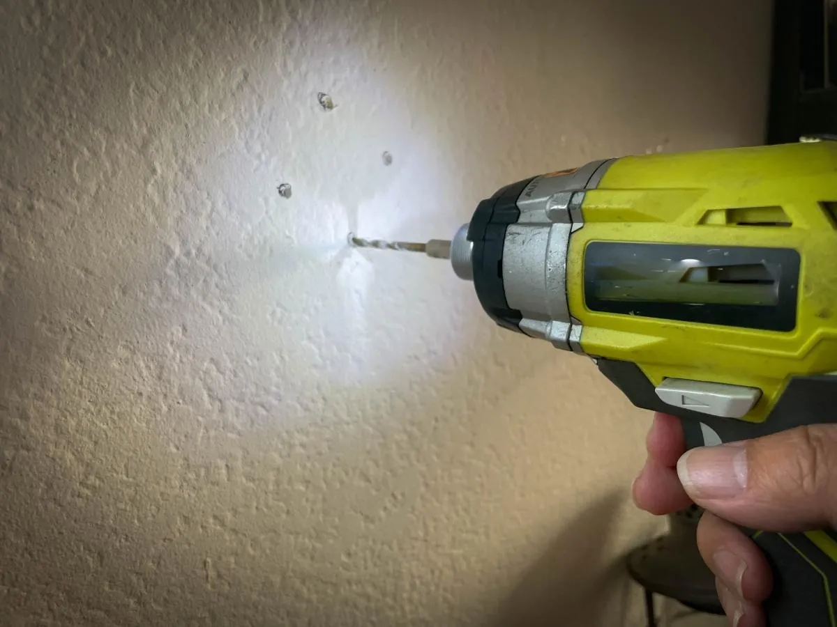 壁内に配線や配管が通っていないか、下地センサーを使って確認しましょう。間違って配線を傷つけないためにも、この確認は必須です。 - ドリルで穴あけ開始